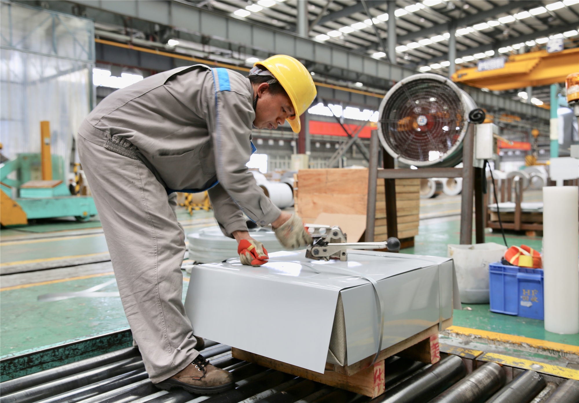 在板材生产部,剪切车间的人数是最多的,有90多名员工,因为作为整条工艺的最后一环,剪切产量直接关系到产品出货量,在这里,速度就是效益。