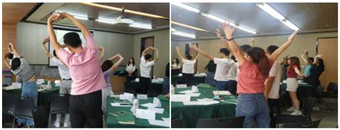 下午课程开始前,学员们跟随视频锻炼与放松,以便更好的学习。