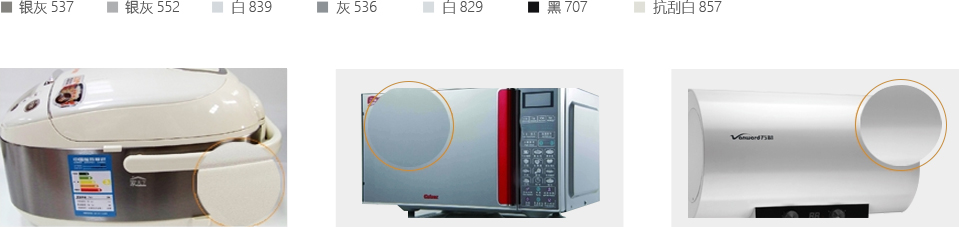 广泛用于冰箱、冷柜、洗衣机、空调为代表的冰洗家电行业,色卡如下: